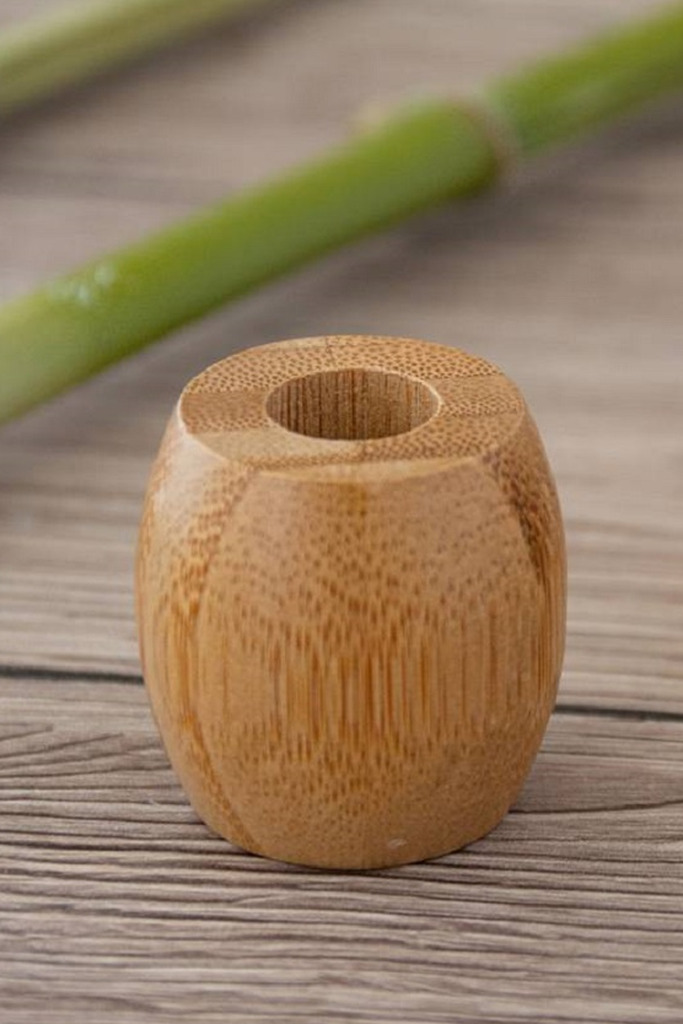 Base a forma di botte in bamboo naturale dove riporre lo spazzolino dopo l’uso quotidiano. Oggetto utile e dallo stile minimale. Ecologico, naturalmente antibatterico e ipoallergenico grazie alle proprietà della cellulosa del bamboo.