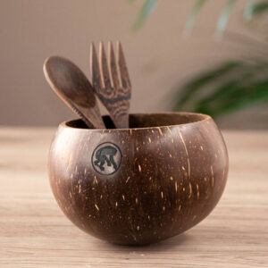Le nostre COCONUT CUP sono ricavate dai resti di produzione delle industrie alimentare e cosmetica: i gusci di cocco sono dei sottoprodotti di lavorazione disponibili in grandi quantità nei paesi tropicali. Da questi scarti delle noci vengono realizzate, completamente a mano, le nostre ciotole. Intere comunità rurali vivono di questa economia del riuso e della rivalutazione delle materie prime di scarto. I manufatti sono così come li vedi: belli, durevoli, naturali, 100% riciclabili. Ai valori materiale, estetico e funzionale dell’oggetto, se ne aggiungono altri importanti di tipo etico e ambientale. Sono prodotte in Vietnam da artigiani locali.