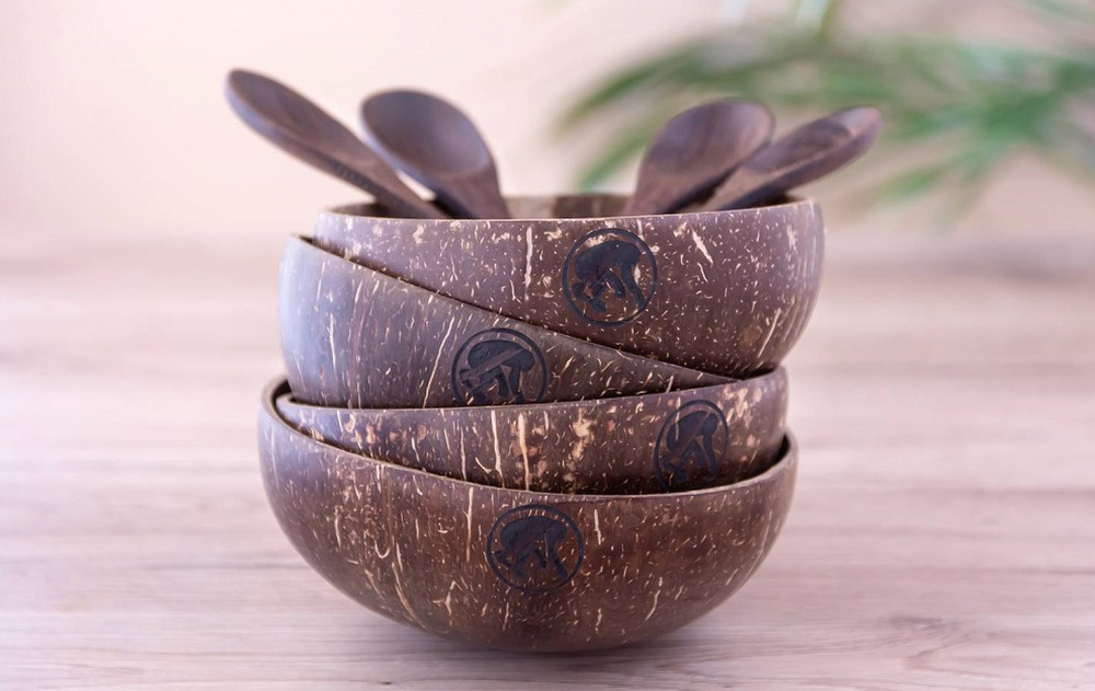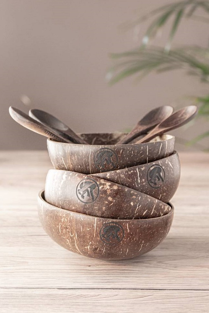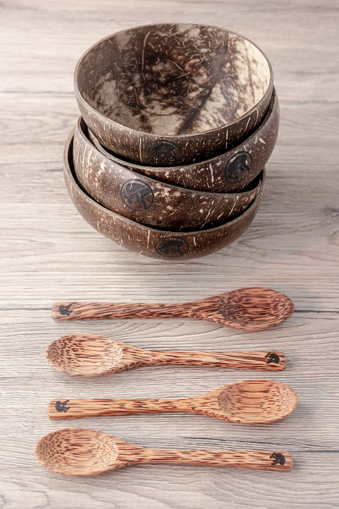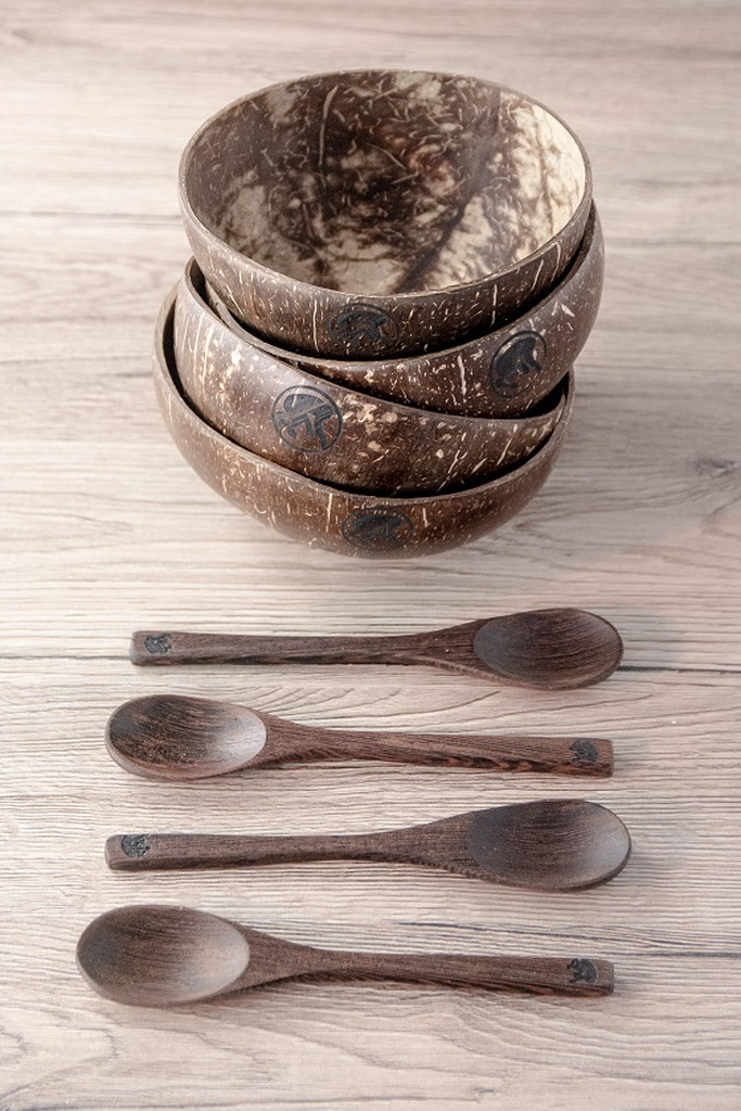 | Confezione: | 4 Original coconut bowl + 4 Cucchiai palma da cocco/ebano |