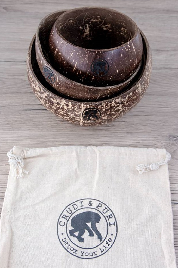 Tris di Coconut bowl per apparecchiare la tua tavola in modo eco e wild. Composto da ciotole di formato diverso: Original, Jumbo, Cup. Fatte in Vietnam da mani artigiane, dentro una filiera di economia circolare e up-cycling.